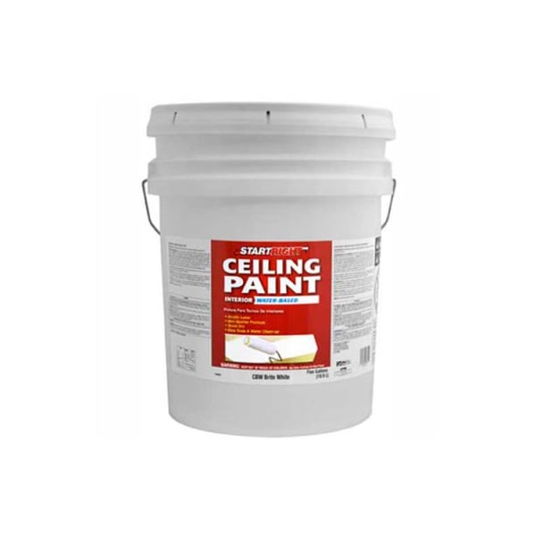 Start right ceiling paint, flat finish, brite white, 5-gallon - 734681 start right ceiling paint is a premium ceiling paint with a non-splatter formula for less mess. Can be easily cleaned with soap and water. New or unsealed interior drywall ceilings.