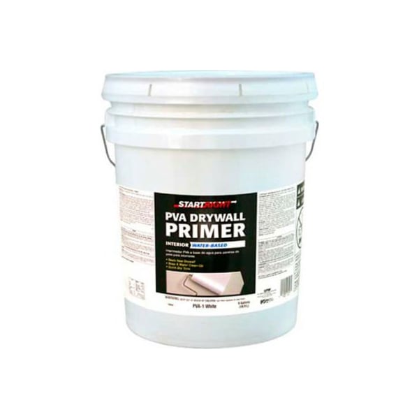 Start right interior drywall primer, 5-gallon - 134034 start right interior drywall primer is an economical choice for priming new or unsealed drywall, ceilings, non-staining wood, plaster, stone, brick, and concrete. Seals new drywall. Quick dry time. Soap and water clean-up. New or unsealed interior drywall, non-staining wood, plaster, brick, stone, and concrete surfaces.