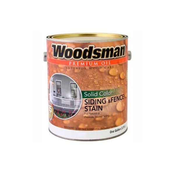 Woodsman solid color oil siding & fence wood stain, white, gallon - 591154 woodsman solid color oil siding & fence stain provides superior coverage for natural or pressure treated wood siding and fences. Features a high-viscosity formula for easy application. Tough, water repellent coating. Mildew and peel resistant. Exterior above ground natural & pressure-treated structures such as wood siding, fences, shingles, shakes, clapboard, rough sawn siding and plywood. Not recommended for decks.