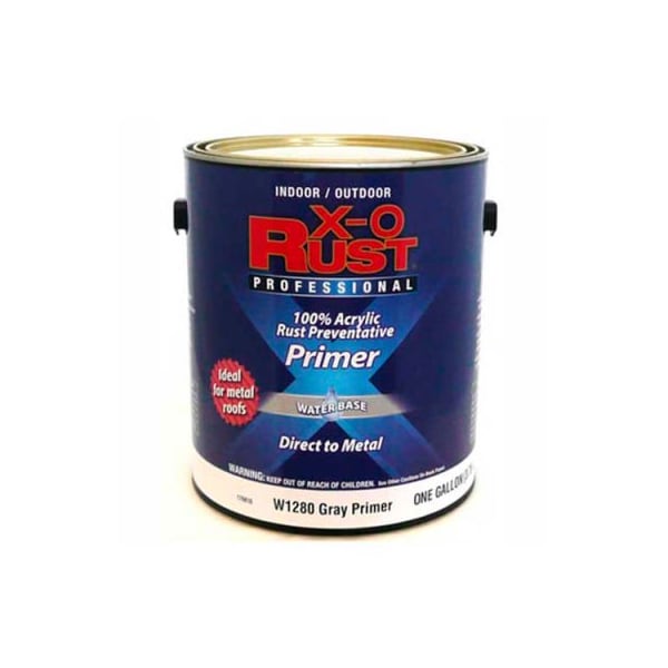 X-o rust anti-rust enamel, gray primer, gallon - 176810 x-o rust waterbase anti-rust brush-on primer is a superior product that can be used for both indoor and outdoor projects. Features a quick drying formula that improves topcoat adhesion. Compatible with both latex and oil based topcoats. For metal substrates only. Interior or exterior metal surfaces, such as file cabinets, fencing, metal, drains, piping, and tools. Ideal for metal roofs.