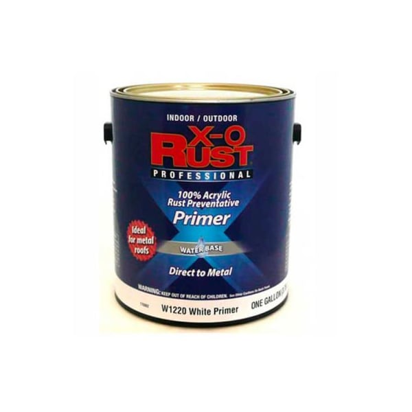 X-o rust anti-rust enamel, white metal primer, gallon - 176802 x-o rust waterbase anti-rust brush-on primer is a superior product that can be used for both indoor and outdoor projects. Features a quick drying formula that improves topcoat adhesion. Compatible with both latex and oil based topcoats. For metal substrates only. Interior or exterior metal surfaces, such as file cabinets, fencing, metal, drains, piping, and tools. Ideal for metal roofs.