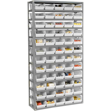 Steel Shelving with 30 4inH Plastic Shelf Bins Green, 36x12x39-7 Shelves