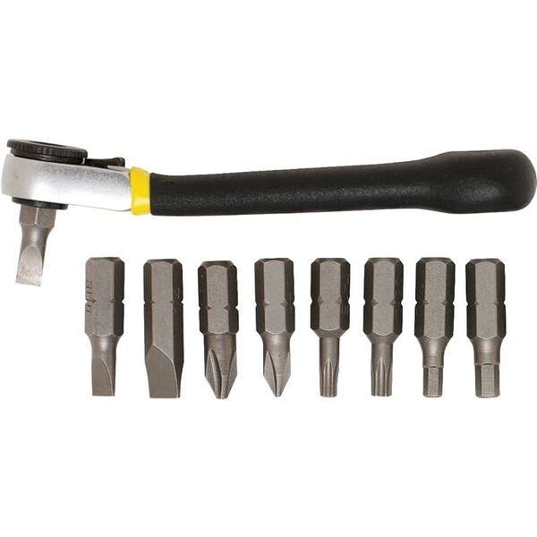 Ratchet screwdriver gives you a greater amount of torque than a standard screwdriver and is ideal for reaching screws in obstructed areas. The fine-tooth ratchet creates a swing radius of only 5 deg. Offset handle allows for easier access to screws positioned at odd angles. Set includes our most common bits for routine maintenance needs.