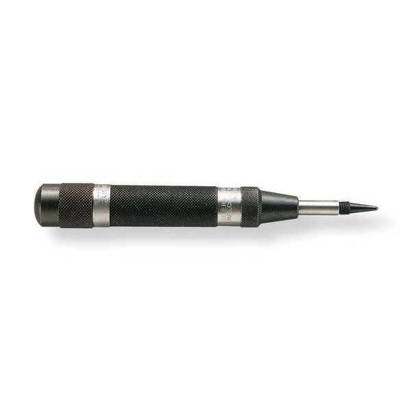Automatic Center Punch, Automatic Yes, Punch Type Center Punch, Tip Size 5/64 in, Tip Type Point, Shank Shape Round, Shank Diameter 5/8 in, Grip Style Knurled, Overall Length 5 1/2 in, Container Type None, Material Applications Metal, Includes Striking Cap No, Measurement Type SAE, Includes Handguard No, Taper Length 1/2 in, Adjustable Blow Force Yes, Features Single Hand Operation, Spring Tension Adjusts for Light or Heavy Strokes and Marking, Finish Black Oxide, Material Steel