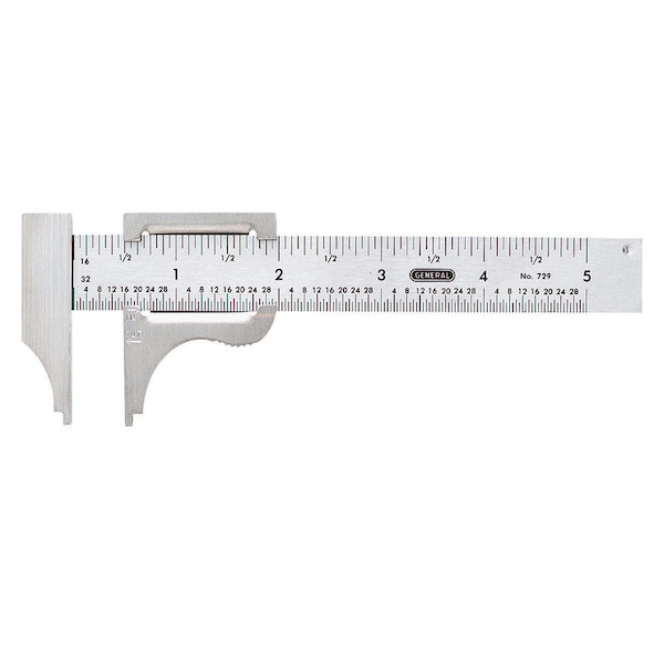 The 729 4 inch steel slide caliper, 16ths and 32nds can make precise inside and outside measurements.