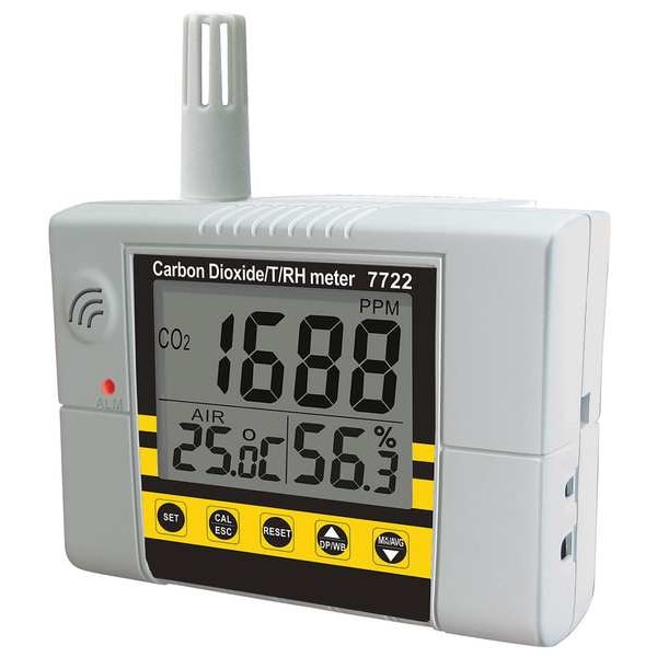 Indoor Air Quality Analyzer, Calibration Certificate Type Not Certified, Digital Display Screen Type LCD with Backlight, Features Calculates, Periodically Updates and Displays an 8-Hr, Min/Max Data Recording, Uses a Stable, Non-dispersive Infrared (NDIR) Sensor, Wall or Desktop Mount, Includes Z110VADPT Adaptor, Maximum Carbon Dioxide Measured 5,000 ppm, Maximum Carbon Monoxide Measured 5,000 ppm, Maximum Dew Point Measured 140 Degrees F, Maximum Oxygen Measured Not Applicable