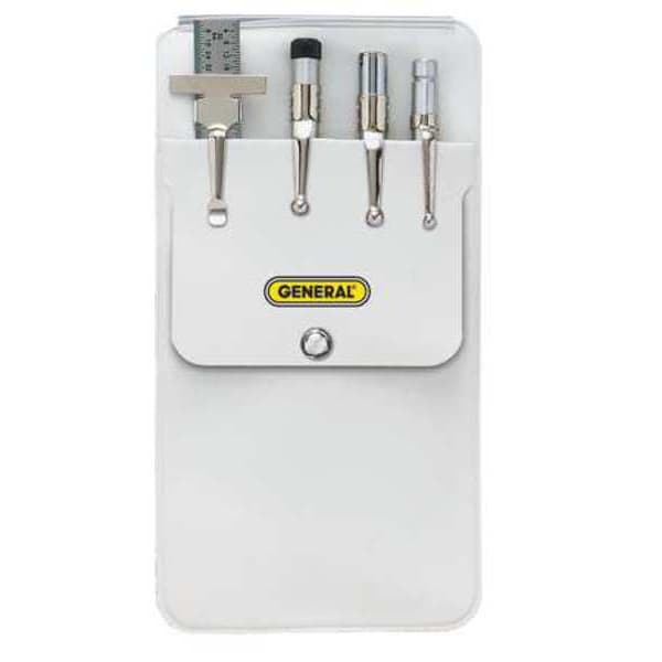 The General Tools S008 Pocket Tool Kit is a must-have tool kit. It includes a stainless steel rule, automatic center punch and carbide scriber for your convenience. The telescoping magnet pickup makes it easy to retrieve metal objects. Measuring 6" in length, the pocket protector will keep you organized. The General Tools S008 Pocket Tool Kit is the ideal product for your home or workbench.