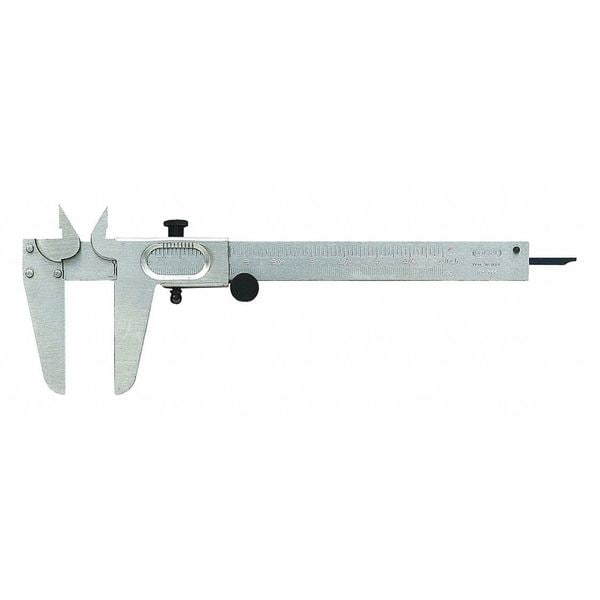 4-Way Vernier Caliper, Range 0 in to 5 in, 0 mm to 127 mm, Graduations 0.1 mm, Accuracy +/- 0.001 in, Caliper Material Steel, Dimension Type Inch/Metric, Graduations - Lower Scale 1/128 in, Graduations - Upper Scale 0.1 mm, Jaw Actuation Type Thumb Wheel, Jaw Depth 2 9/16 in, Maximum Measurement - Decimal Inch 5 in, Maximum Measurement - Fractional Inch 5 in, Maximum Measurement - mm 125 mm, Measurements 4-Way, Measures Depth Yes, Measures Inside Dimension Yes, Measures Outside Dimension Yes
