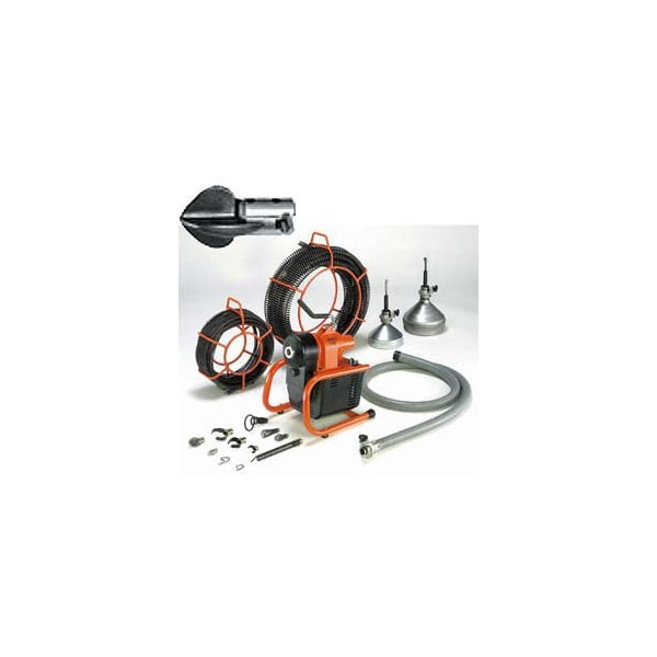 - General Pipe Cleaners Sectional Machine w/ 5 15'x7/8 Cables, Cable Carrier, Cutter Set & Tool Box.The I-95 gives you power and convenienceThe motor is a 1/3 hp capacitor type, so it delivers plenty of torque to the cablesYet, as soon as you lift the drive handle, the cable stops rotating, so there's no additional torque build upYou also use the drive handle to carry the machineAnd when it's in position on the job, its four point base gives it rock-solid stabilityA cutter holder is attached to the back of the I-95, so your cutting heads are always with the machineA Ground Fault Circuit Interrupter is standard equipmentClear 4 lines up to 150 feet long with 7/8 x 15' sectionsWe've included five, 15' x 7/8 sections to get you started.