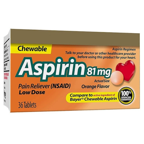 Chewable Aspirin Tablets, Orange Flavor, 81mg, 36PK