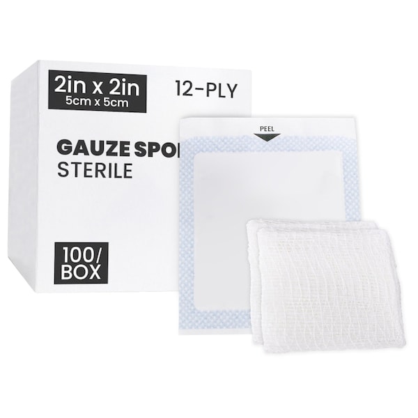 Sterile Gauze 2"x2", 12Ply, 100PK
