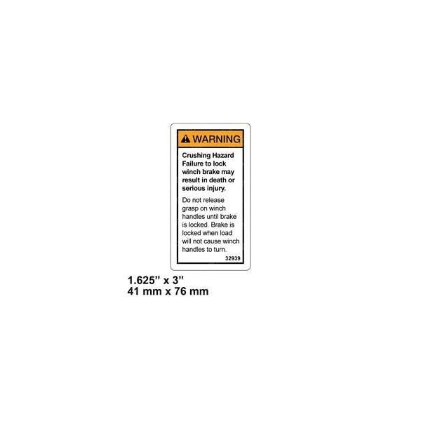REPLACEMENT DECAL, CRUSHING HAZ/BRAKE LOCK