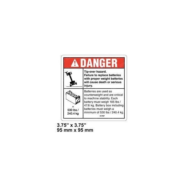 REPLACEMENT DECAL DANGER TIP-OVER BATTERY