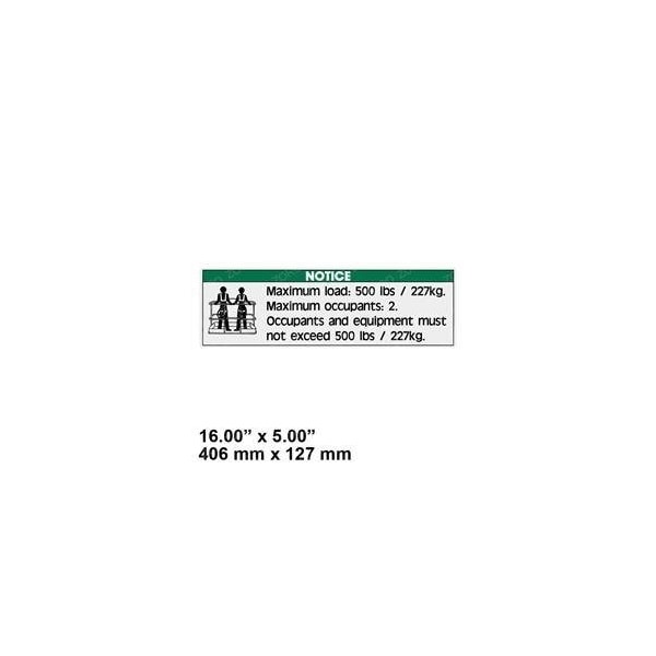 REPLACEMENT DECAL, NOTICE MAX LOAD 500 LBS