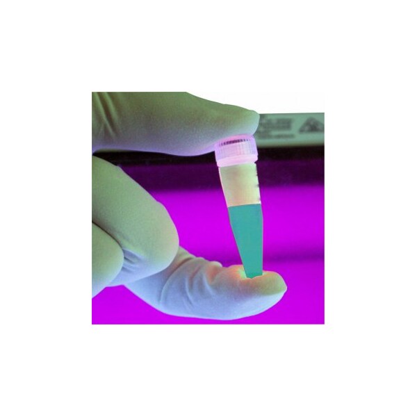 Glow Loading Dyes provide intense DNA/RNA bands with low background and band distortion. Ideal for use with all agarose or acrylamide gels. Dyes reduce exposure problems associated with ethidium bromide disposal. Glow Dyes are Ficoll based and supplied at 6X concentration in 1.5 ml volume. Glow RNA Dyes are ideal for quick screenings of RNA preps and safer than formaldehyde agarose gels. RNA Loading Dyes are formamide based and available at 2X concentration in 1.5 ml volume.