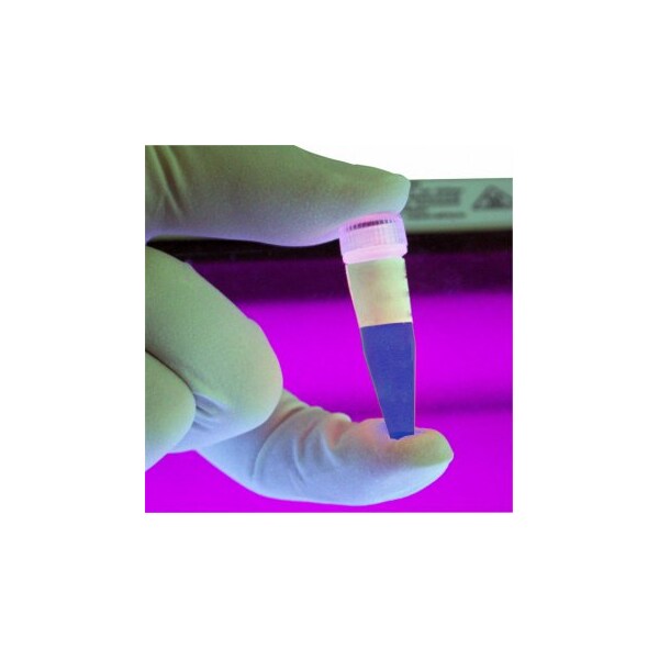 Glow Loading Dyes provide intense DNA/RNA bands with low background and band distortion. Ideal for use with all agarose or acrylamide gels. Dyes reduce exposure problems associated with ethidium bromide disposal. Glow Dyes are Ficoll based and supplied at 6X concentration in 1.5 ml volume. Glow RNA Dyes are ideal for quick screenings of RNA preps and safer than formaldehyde agarose gels. RNA Loading Dyes are formamide based and available at 2X concentration in 1.5 ml volume.
