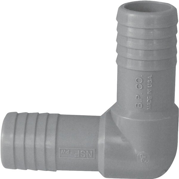 Boshart Pipe Elbow, Nominal Size 34 in, Insert Connection, Angle 90 deg, Polypropylene, Gray