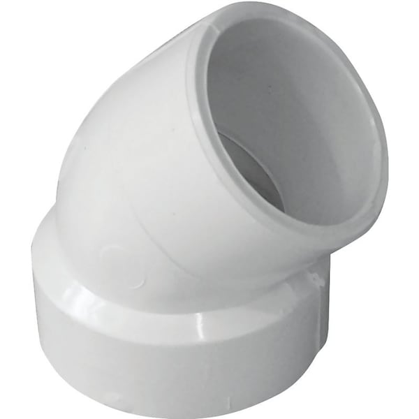 CANPLAS Pipe Elbow, 112 in, Hub x Spigot, 45 deg Angle, PVC, White, SCH 40 Schedule