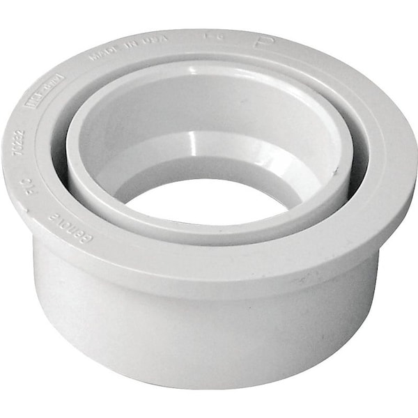CANPLAS Reducing Pipe Bushing, Nominal Size 3 x 2 in, Spigot x Hub Connection, PVC, White
