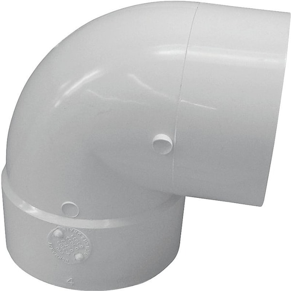 CANPLAS Short Turn Pipe Elbow, 6 in, Spigot x Hub, 90 deg Angle, PVC, White