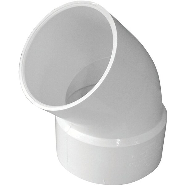 CANPLAS Street Pipe Elbow, Nominal Size 6 in, Spigot x Hub Connection, Angle 45 deg, PVC, White