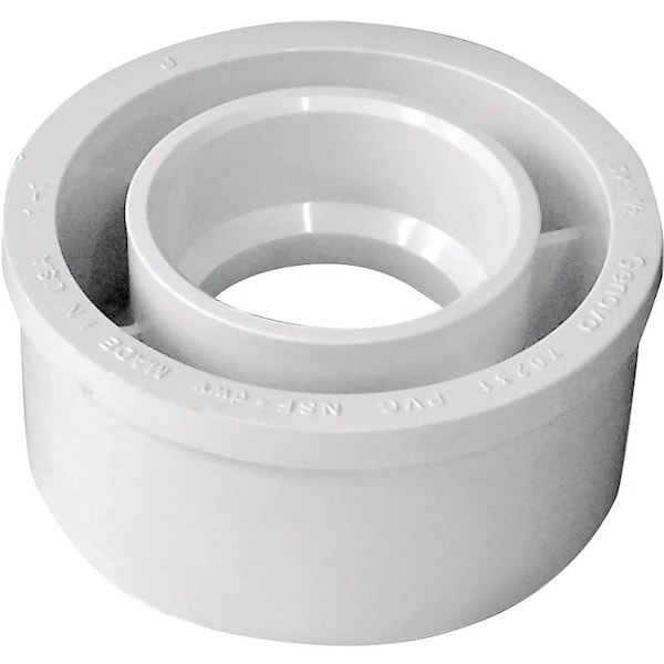 IPEX Flush Reducing Pipe Bushing, Nominal Size 3 x 112 in, Spigot x Hub Connection, Schedule Rating SCH 40, PVC, White