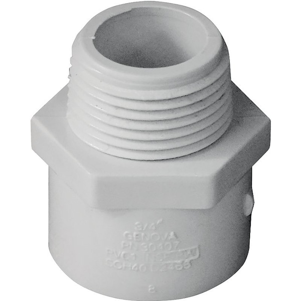 LASCO Pipe Adapter, 34 in, MPT x Slip, PVC, White, SCH 40 Schedule, 480 psi Pressure