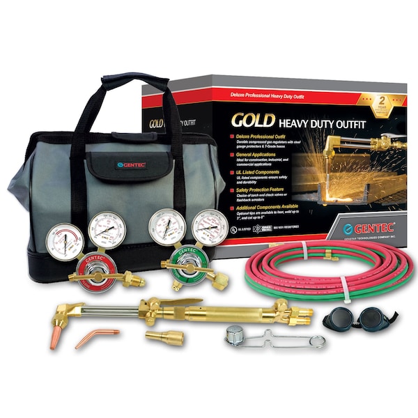 Heavy Duty Outfits in Deluxe Tool Bag for Industrial & General Purposes Can weld up to 1/8in and cut up to 1in Designed for all trades. Features a complete package of apparatus and accessories for general purpose and industrial use With optional tips, can weld up to 1in and cut up to 6in 20 T-grade twin hoses 4131 is equipped with 24-CV7PR Torch End Check Valves 4131FA is equipped with FA7TPR Flashback Arrestors, which include built-in check valves Harris Pipeliner Classic equivalent