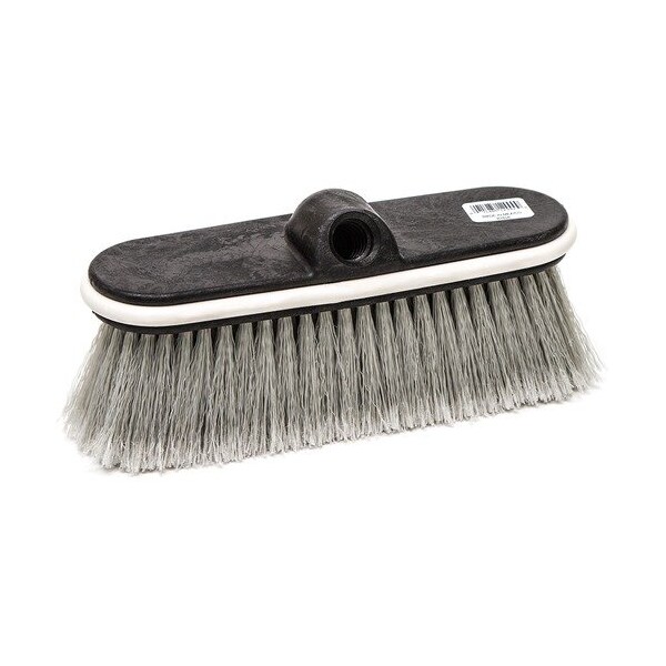 Use this Window, Vehicle & Wall Brush for scratchless cleaning and excellent wearability. It is made with heavy-duty, gray-flagged polystyrene. Soft filaments set in foam blocks with vinyl bumpers helps protect equipment, painted vehicle surfaces and delicate trim. Brush uses standard threaded handle - tapered or flow-through for wet use. Trim length is 2-3/8''.