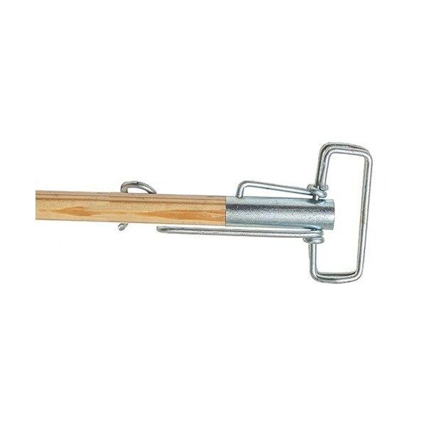 Metal Sure Grip Mop Handle features an adjustable, spring clamp for versatile use. Jaws open wide to handle any size mop so it is ideal for wide headbands. The 4'' wide plated head is rust-resistant and corrosion-resistant.