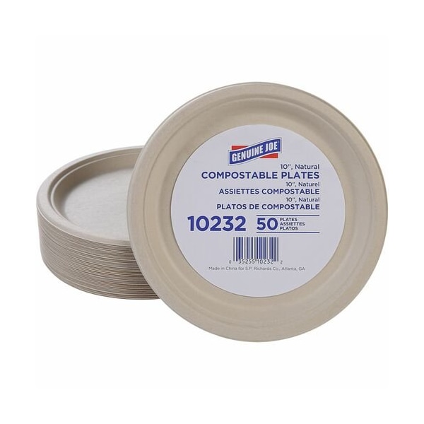 Genuine Joe Plates, Compostable, 10in, White, 50PK