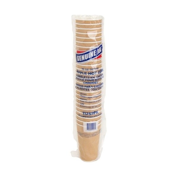 Genuine Joe Rippled Hot Cup, 16oz., 2 Brown, 25PK