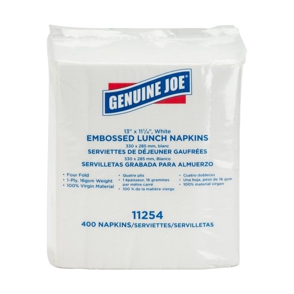 Embossed lunch napkins are perfect for your casual meals. One-ply, four-fold design handles sticky messes with a soft touch. It is folded to a more manageable, compact rectangle to sit neatly beside plates and under utensils. Paper material means they are disposable for easy cleanup.