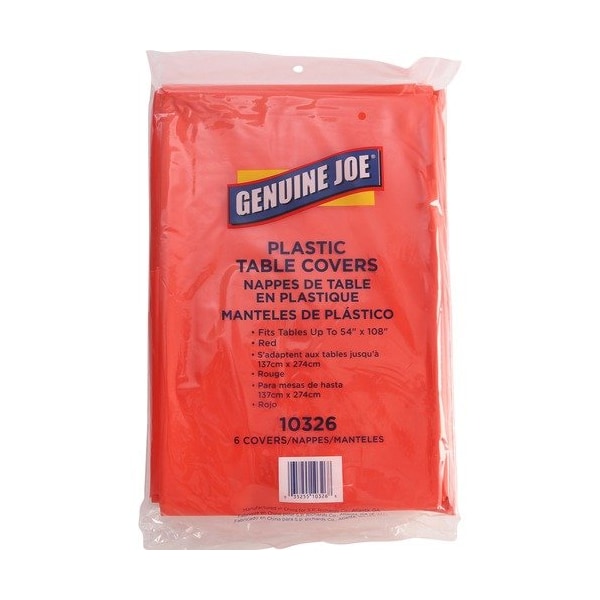 TABLECOVER, PLASTC, 54X108, RD, 6PK
