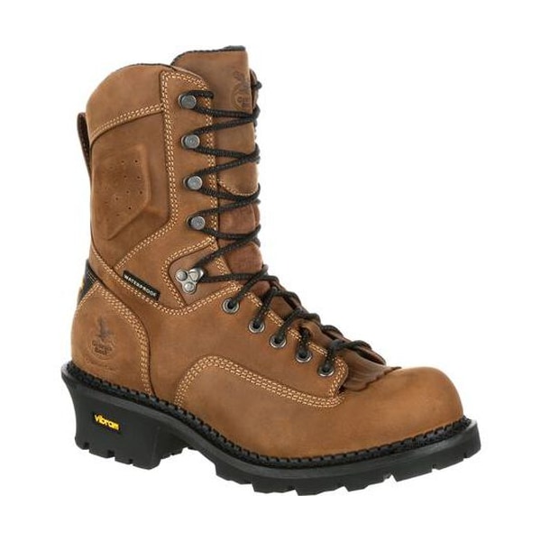 The Georgia Boot Comfort Core Logger Waterproof Work Boot was designed to offer rugged durability and exceptional comfort. Georgia Boot put comfort in the name of the product because it's such a big part of what this logger boot does. The men's boot has the patented CC7 Comfort Core insole, which consists of a three-layer comfort system. The first layer of polyurethane cushions and absorbs shock. The second layer of polyurethane gives you heel and arch support. Finally, the third layer is memory foam for customization and comfort. This comfortable work boot also features a heel-stabilizing Counter Lock, a durable double-ribbed tempered steel shank for arch support, and a high-performance mesh lining for air circulation. Crafted from the highest-quality materials, this footwear has a rubber Vibram sole that resists slips and oils. Goodyear welt construction gives this full-grain leather boot durability that can hold up to years of tough wear. It features milled nickel hardware. The premium nylon laces are guaranteed for life. The guarantees don't stop there. The Georgia Waterproof System promises to keep your feet dry through days of rain, mud and standing water. This is a nine-inch logger boot with a removable brush guard kiltie. It's great for keeping twigs and brush out of your laces and boot. You deserve a tough work boot that's made from the best materials and will give you the comfort to work all day. Georgia Boot Comfort Core Logger. Rugged Never Felt So Good.