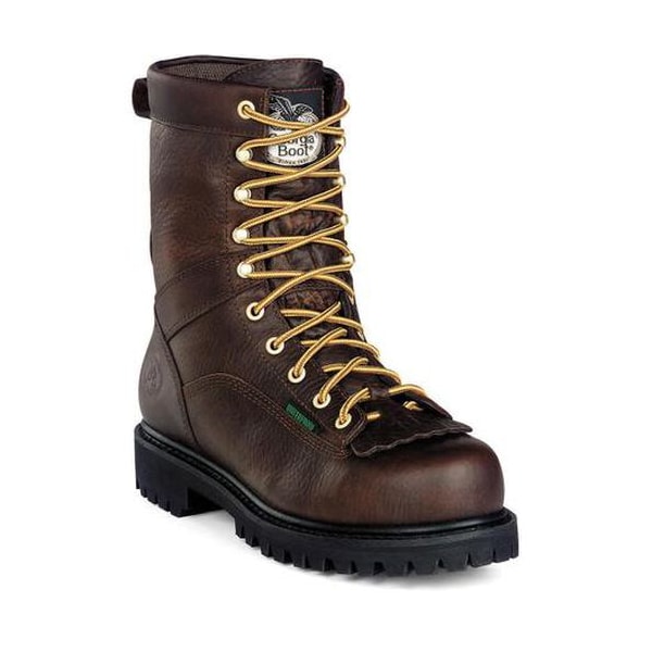 Georgia Boot Lace-to-Toe Waterproof Work Boots are tough, quality boots that perform. Your feet are guaranteed to stay dry if you're wearing these boots thanks to the Georgia Waterproof System. Go where the job takes you; Georgia Boot has you covered. Lace-To-Toe boots are long-lasting with Goodyear welt construction and solid hardware that will stand up to years of lacing. These boots are built with premium leathers so they break in quickly. Comfort features include a removable polyurethane insole and a steel shank that gives you arch support and stability. The boots have a removable brush guard kiltie. Choose waterproof work boots built with premium leathers. Order Georgia Lace-To-Toe Work Boots.