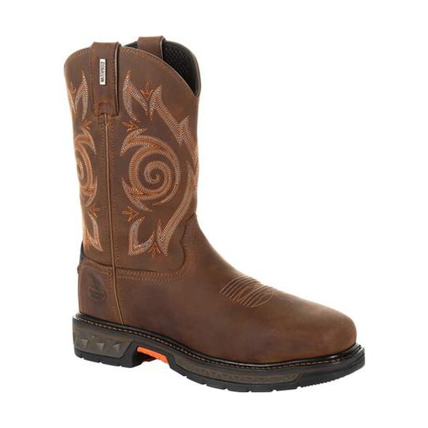 Men's Waterproof Pull On Work Boot, 9.5 M, Steel Toe, 11 in H, Brown, GB00264