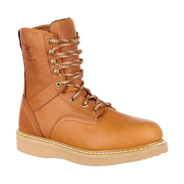 If you've been searching for a pair of work boots that provide strength, durability, comfort and safety, these Georgia Boot Wedge steel toe work boots are a great choice. The proprietary SPR leather is remarkably strong and abrasion resistant, having undergone a special tanning technique. The steel toe is a key protective feature on this Wedge work boot. These steel toe boots meet the ASTM classification for protective toes (can endure impact and compression up to 75 lbs. ) and also the Electrical Hazard Standard. With the combination of the full-grain leather and safety features, this is one dependable boot. Goodyear welt construction gives these Georgia boots additional durability and strength. Shock absorption and comfort come from the cushioned insole. On top of having steady footing, you'll find working more comfortable thanks to the steel shank in this Wedge boot. Underneath, the Poly Wedge ULTRA Outsole provides cushioning and flexibility, as well as oil, slip and chemical-resistance.