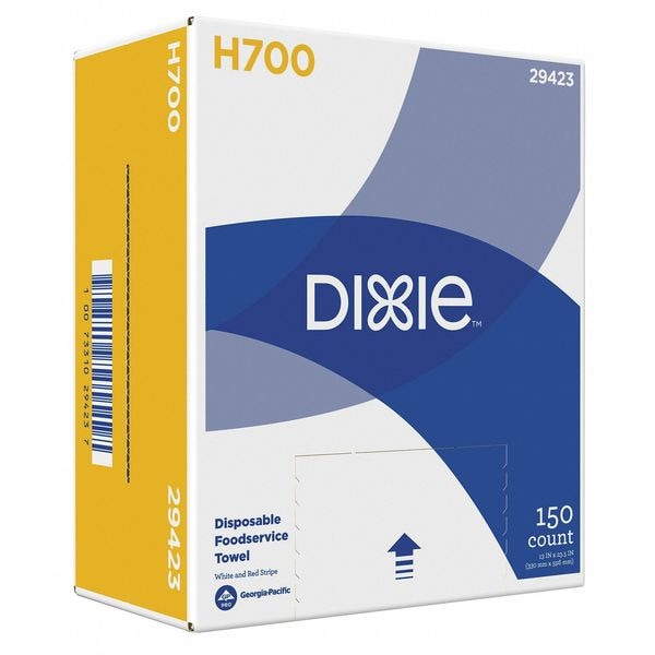Dry Wipe, Wipe Type Foodservice Wipe, Dispenser Box, Product Series Dixie(TM) H700, Absorbency Level Heavy, Wet Strength Level Excellent, Red, White, Minimum Cleanroom Standards None, Hydro-Entangled (HEF), Lint Level Low Lint, Roll Length No Roll, Sheet Length 23 1/2 in, Sheet Width 13 in, Number of Sheets 150, Ply 1