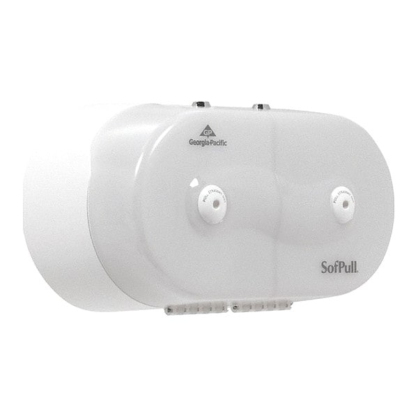 Toilet Paper Dispenser, Center Pull, SofPull(R), Dispenser Capacity (2) Rolls, Horizontal Double Roll, Dispenser Material Plastic, Finish Unfinished, White, Dispenser Depth 7 in, Universal, Ligature Resistant No, ADA Compliance Yes, Dispenser Height 9 in, Dispenser Mounting Wall, Dispenser Width 16 1/8 in, Compatible Grainger Part Number 32GV95, Compatible Mfg. Model Number 19516, Sublease Requirement Sublease Not Required, Toilet Paper Dispenser