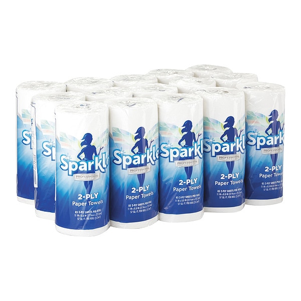 Sparkle Perforated Roll Paper Towels, 2 Ply, 85 Sheets, 60 ft, White, 15 PK