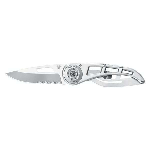 If you are looking for a folding knife that is lightweight and has a streamlined design, the GERBER Ripstop II Folding Knife is the perfect tool. The blade edge of this 3 in. stainless steel blade is partially serrated, making it ideal for cutting through tough materials. Its frame lock keeps the blade securely in place while you work, and allows you to disengage the lock with one hand. The handle of this pocket knife is made of stainless steel with a silver finish, which gives it an attractive appearance. This GERBER pocket knife weighs only 1 oz., making it ultra light weight and easy to carry around with you wherever you go. With its super lightweight design and smooth folding action, the GERBER Ripstop II Folding Knife will meet all your demands when it comes to working on small projects.