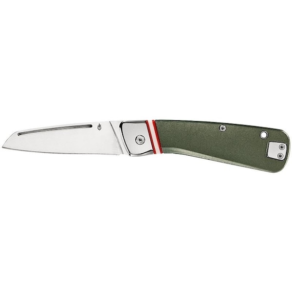 GERBER Folding Pocket Knife, Number of Blades 1, Sheepsfoot, Straight Edge Blade, Stainless Steel Blade, 29 in L Blade, Aluminum Handle, Handle Color Green, Lock Type Slip Joint, Closed Length 4 in, 69 in OAL, Includes Pocket Clip