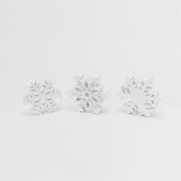 Bring the holiday spirit into your home with these 6-inch Holiday Snowflake Ornaments. They are perfect for tabletops banisters and anywhere else in your home. Choose from three assorted styles.