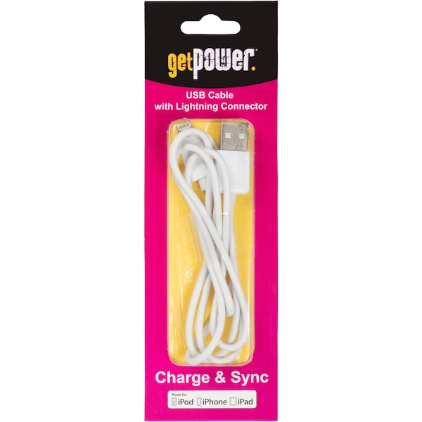 GetPower 3 ft. L Lightning to USB Cables 1 pk