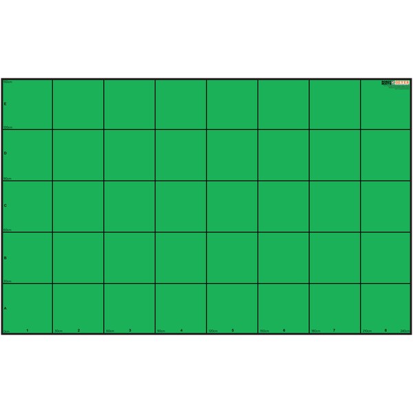 Wonder League Robotics Competition Grid Mat Green Screen Version. This mat is designed to the specification for the Wonder Workshop Dash and Dot Challenge. Includes the 1-8 and A-E labels. Printed in full color on quality 13oz outdoor matte vinyl. Measures 150cm x 240cm with 30cm grid.