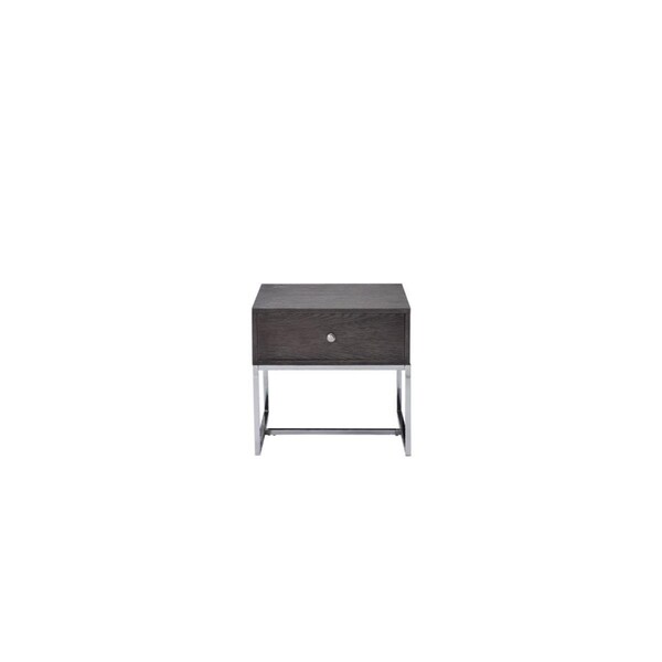 22 in. Oak Manufactured Wood Rectangular End Table with Drawer Chrome & Gray