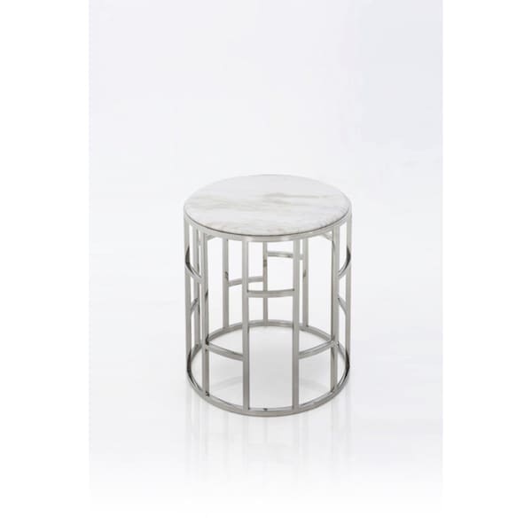 Stylish Silver & Marble Round Geometric End Or Side Table White