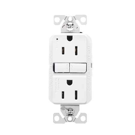 Eaton GFCI Receptacle, 125 V, 15 A, NEMA: NEMA 5-15R, Back, Side Wiring, White