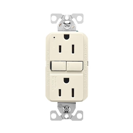GFCI Receptacle, 15A, 125VAC, 5-15R, Ivory